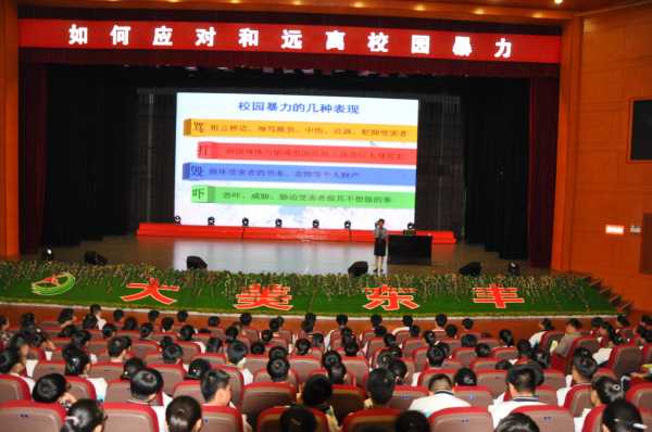 本次活动有14个班级,共计 770余名师生参加,为了给学生们呈现一堂“色香味”俱全的法律大餐,东丰县司法局特邀到辽源市检察院刑事检察部副部长、未检办主任、二级心理咨询师李吏芹为大家授课。针对当前青少年心理特点、现实表现、在校活动等情况,李检察官以“如何应对和远离校园暴力”为主题,为学生们量身定做了丰富有趣的PPT课件,图声结合,从学生熟悉的身边人、身边事入手,通过通俗易懂的案例、生动形象的动漫、耳熟能详的歌谣与学生进行互动,讲解了未成年人保护法、刑事责任年龄的划分等法律知识。课堂上,同学们认真听讲,踊跃发言,在潜移默化中懂得尊法、学法、守法、用法。同时,在“法治讲堂”开讲之前,县局法宣科工作人员将800本《七五普法——青少年以案学法读本》发放至每一名学生手中,做到让法治入耳,让普法落地。法治课堂结束后,同学们纷纷表示学到了如何防范和应对校园暴力及校园欺凌,如何加强自我保护、有效预防和远离犯罪。