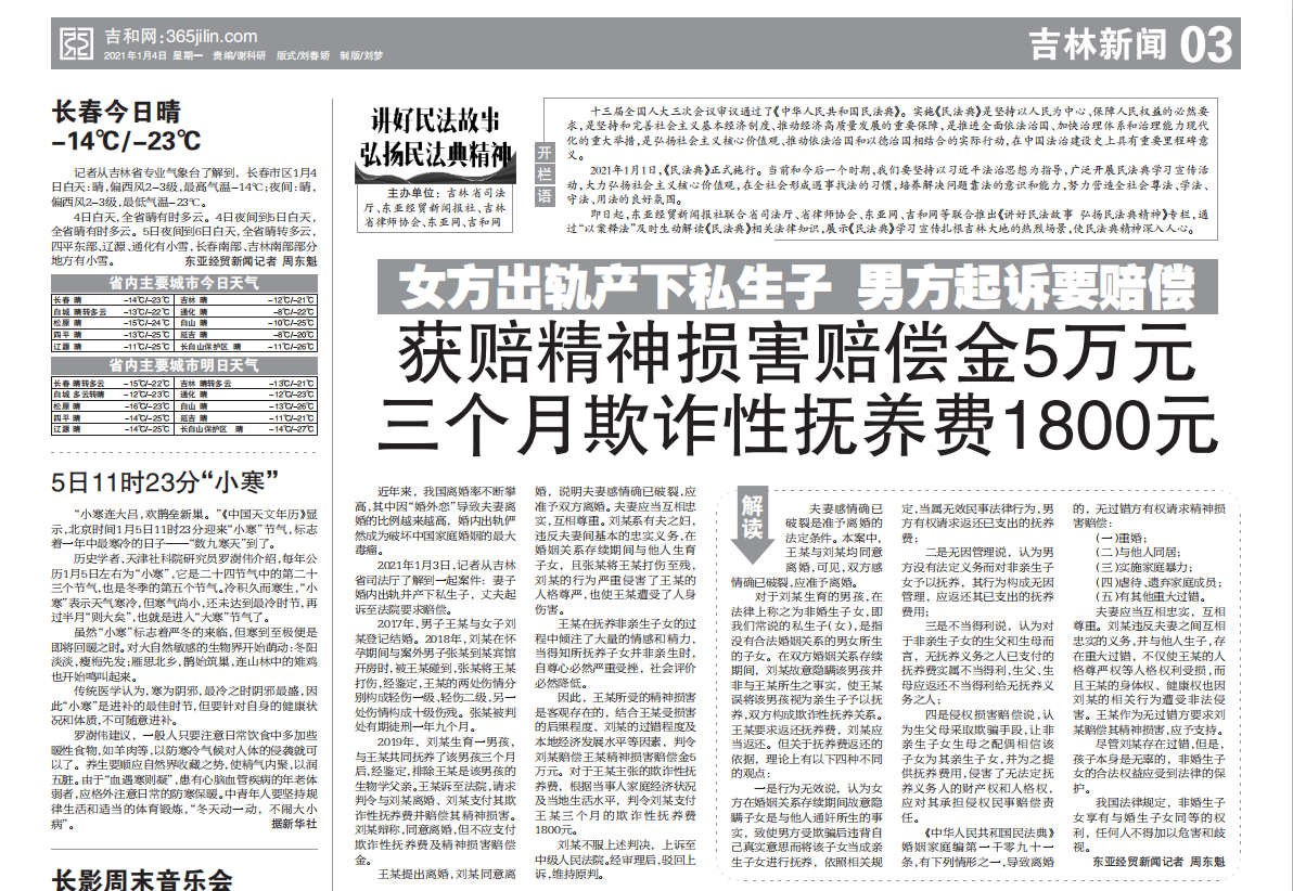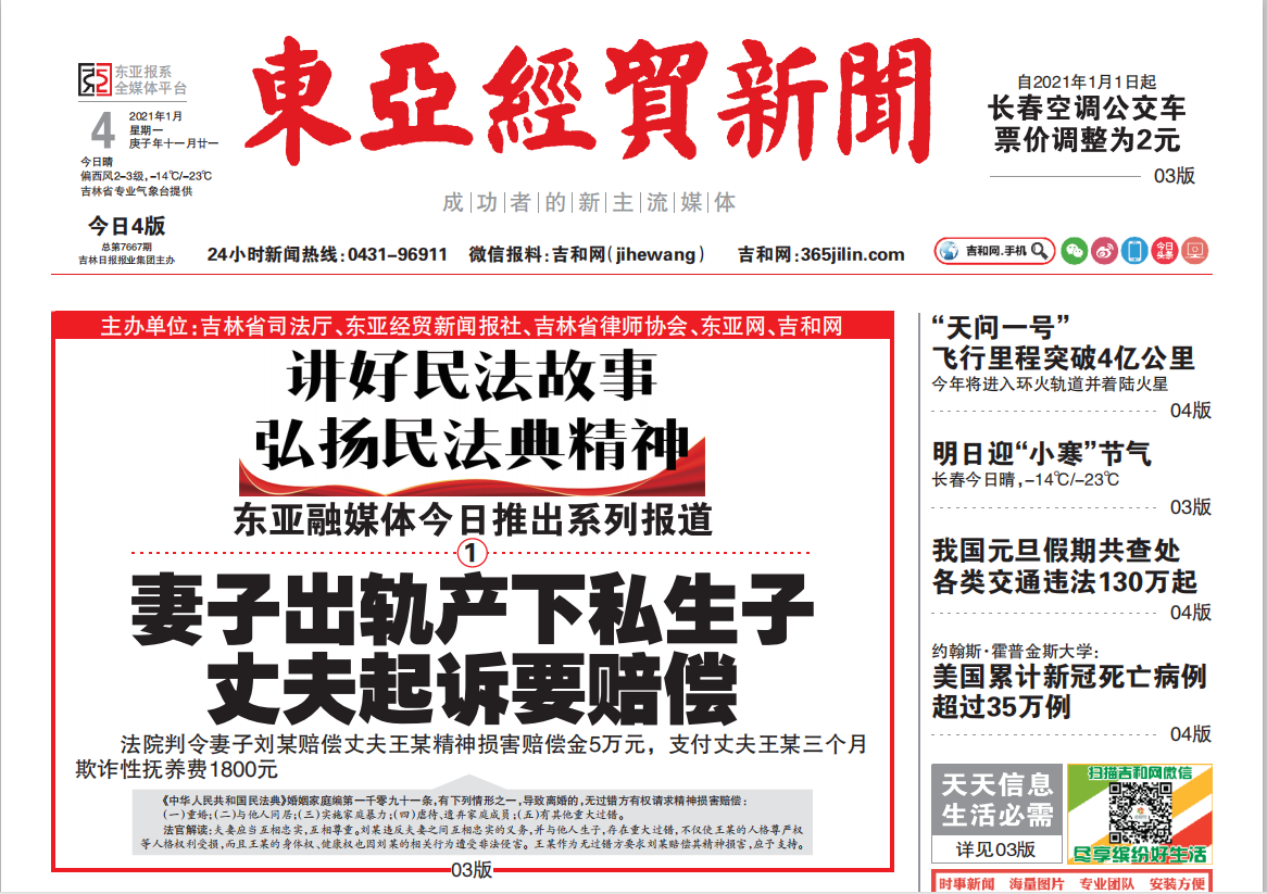 即日起,东亚经贸新闻报社联合省司法厅、省律师协会、东亚网、吉和网等联合推出《讲好民法故事 弘扬民法典精神》专栏,通过“以案释法”及时生动解读《民法典》相关法律知识,展示《民法典》学习宣传扎根吉林大地的热烈场景,使民法典精神深入人心。
