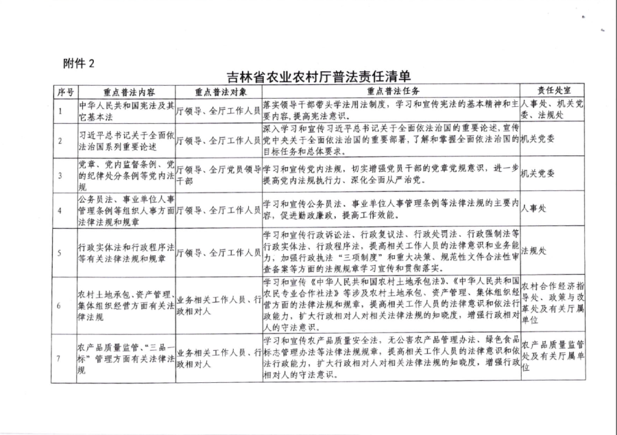 附件:1.吉林省农业农村厅关于落实“谁执法谁普法”