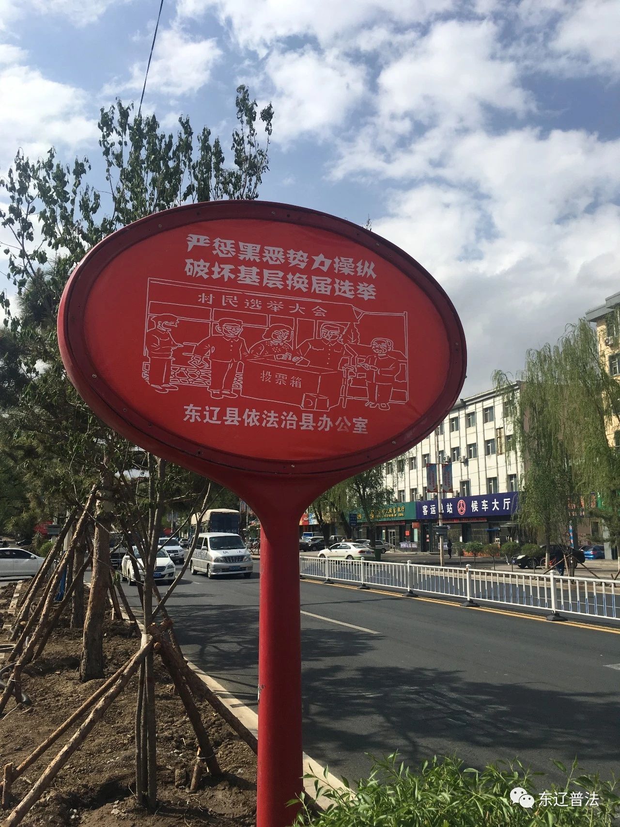 东辽“法治文化一条街”,以法治文化为主题,利用剪纸画形式,图文结合,将宪法、扫黑除恶、环境保护、学法、用法、尊法、守法等10个普法宣传题材制作成宣传牌,通过剪纸画形式进行宣传,形成浓郁的法治文化氛围。